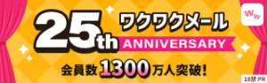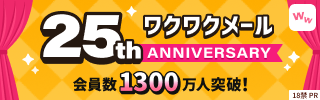 皆さまのおかげで、ワクワクメールは25周年を迎え、会員数も1,300万人を突破しました🎉