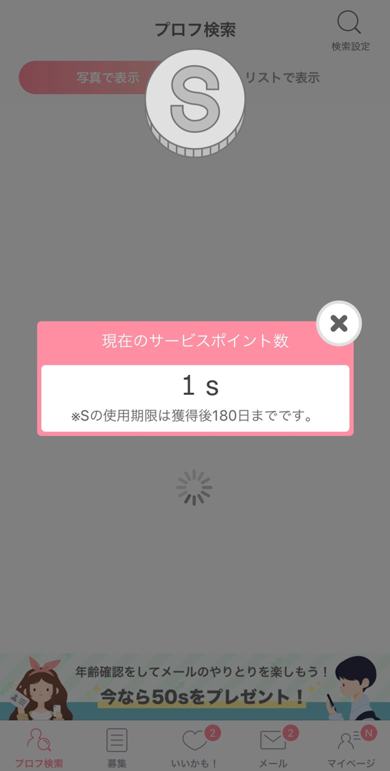 アプリもインストールして、毎日ログインすれば1日1Sがもらえます!