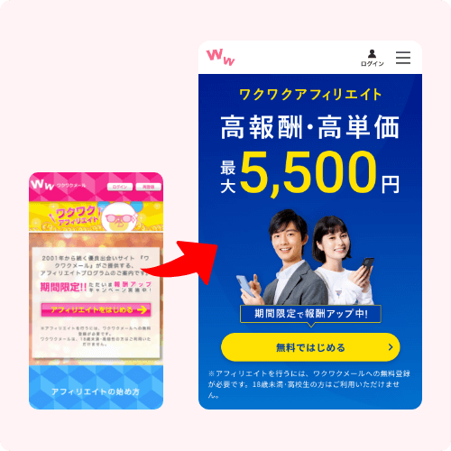 早速ワクワクメールアフィリエイトLPにアクセスして、ご覧ください!